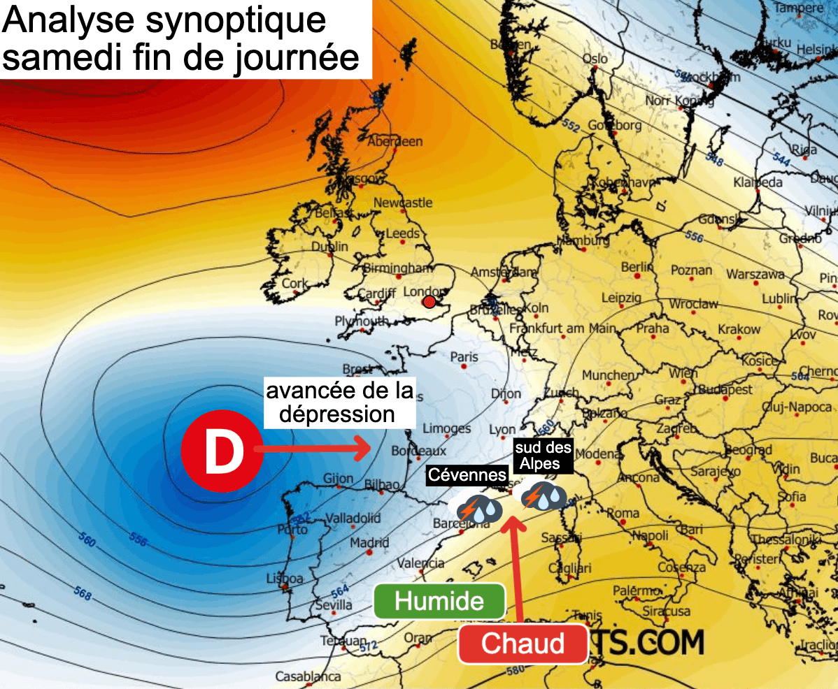 Carte synoptique de la situation générale sur l'Europe samedi