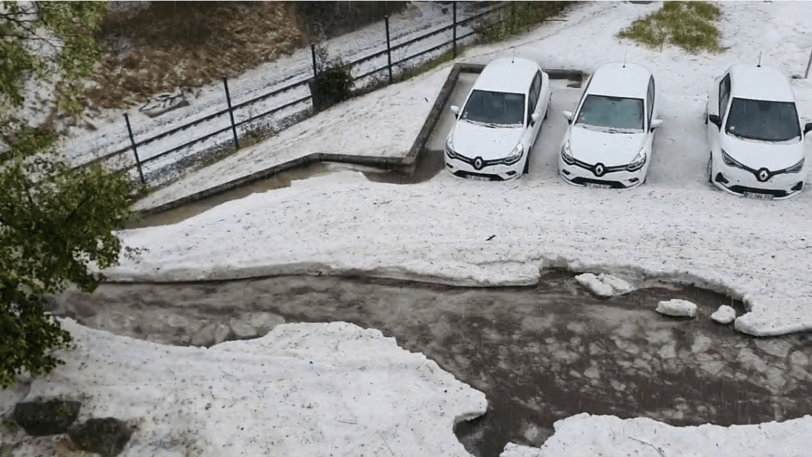 Grosses quantités de grêle à Saint-Étienne dans la Loire le mercredi 17 août 2022 - @BikeGaga sur Twitter