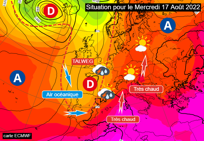Situation à échelle continentale pour le mercredi 17 août 2022 - via ECMWF