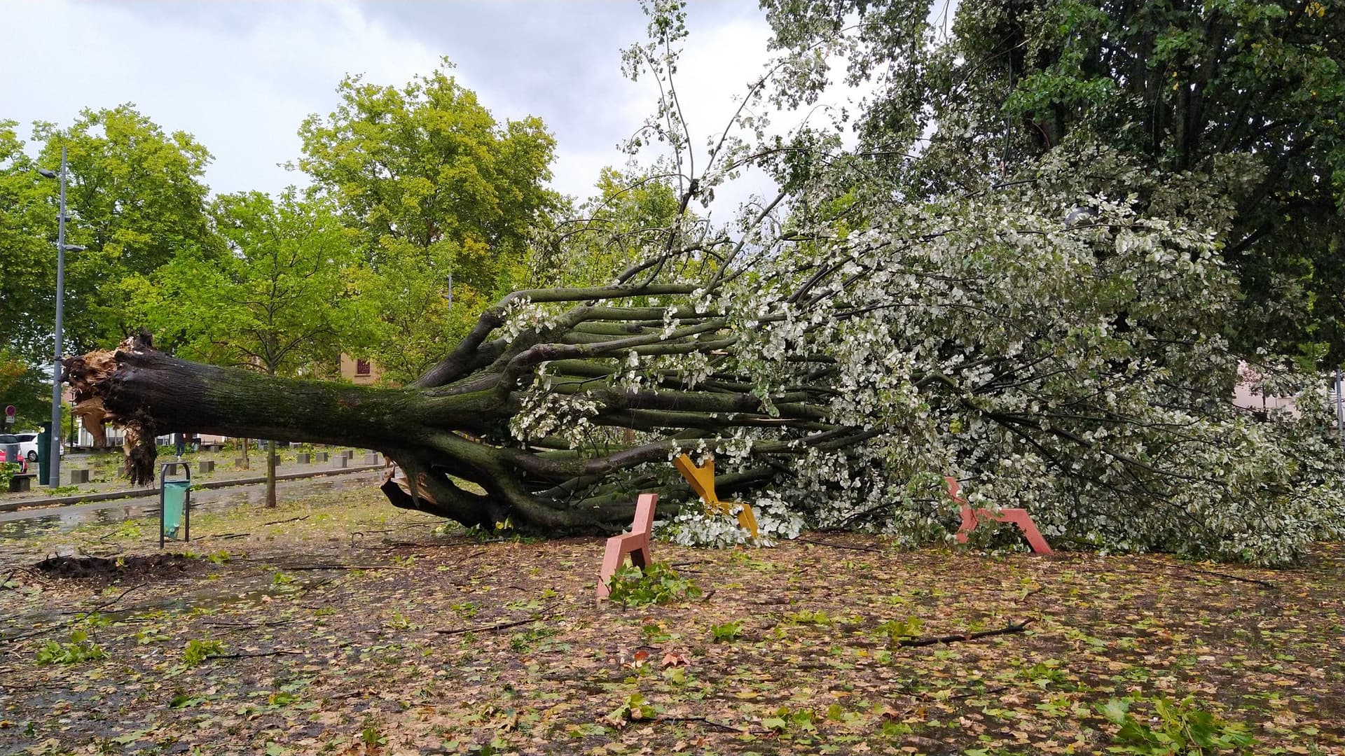 Arbre arraché par l'orage à Saint-Étienne (Loire) le mercredi 17 août 2022 - photo via Twitter