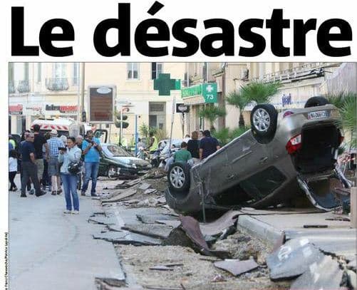 Le boulevard de la République à Cannes dévasté par les inondations du 3 Octobre 2015 au soir - Nice-Matin
