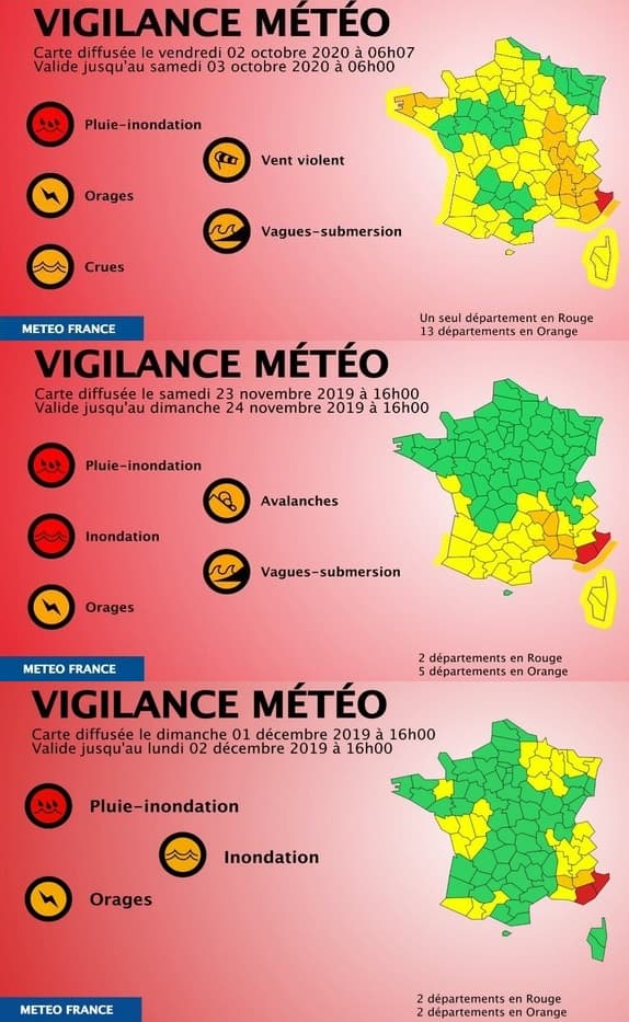 3 vigilances rouges Pluies/Inondations en moins d'un an sur les Alpes-Maritimes - Météo-France