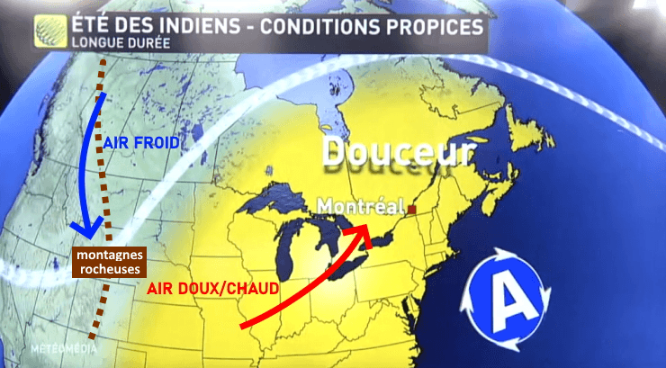 Schéma de la situation propice à l'observation de l'été indien - via Météo Média