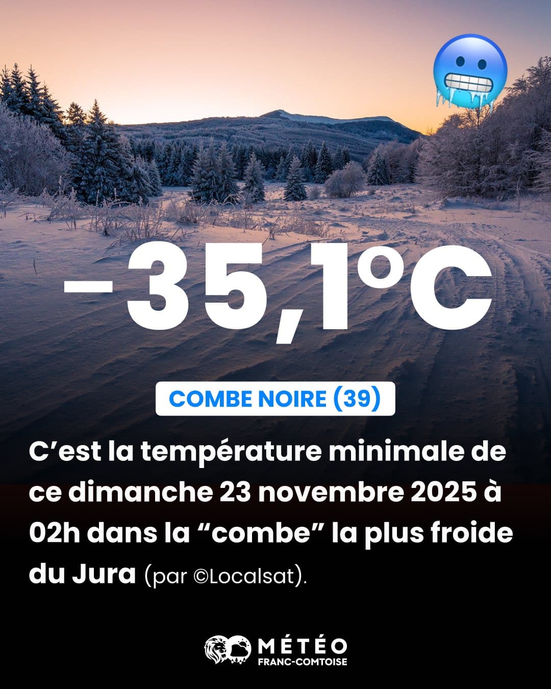 Jusqu'à -35,1°C à la Combe Noire dans le Jura le 23 novembre au matin ! - Via Météo-Franc Comtoise