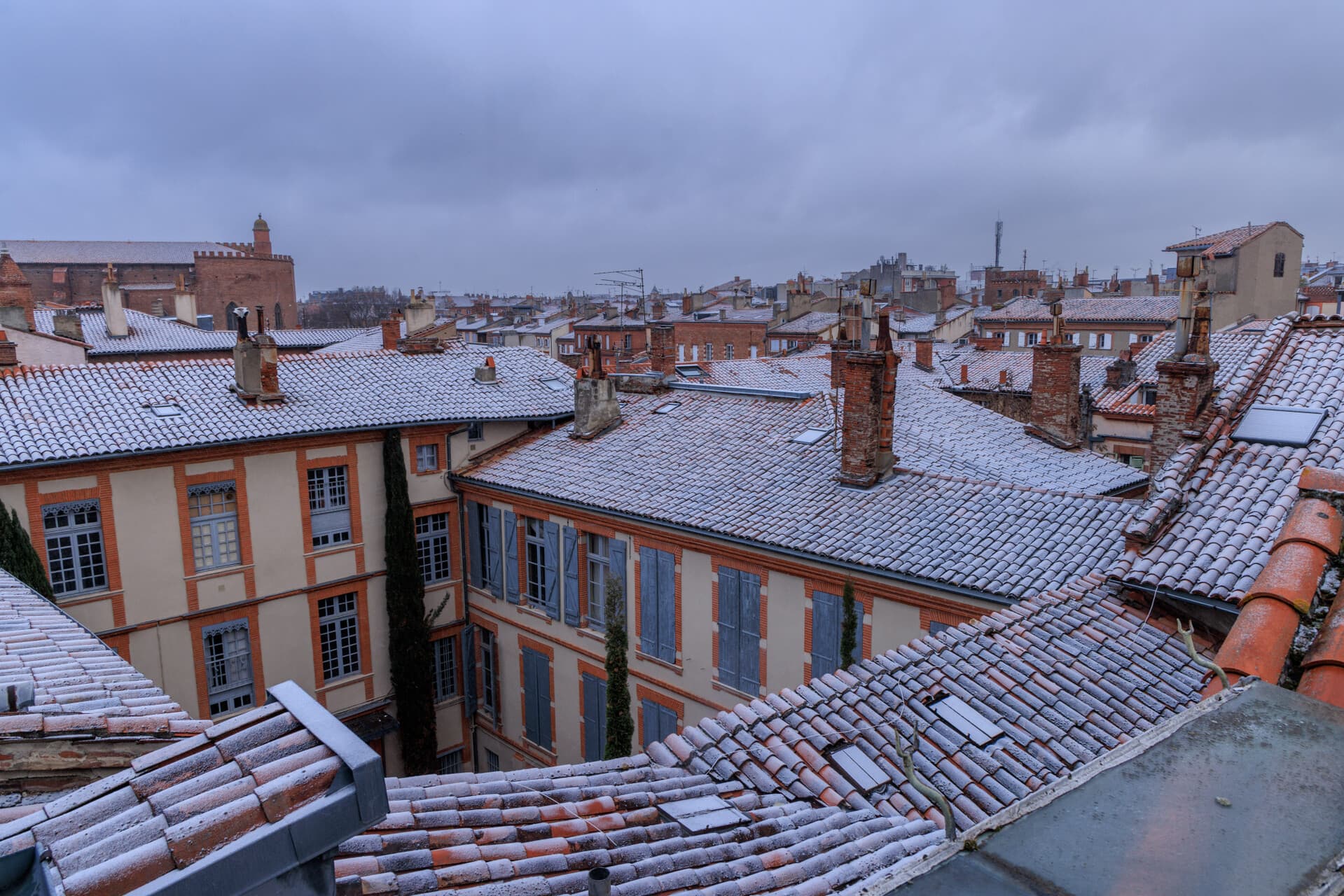 Fin saupoudrage de neige sur les toits de Toulouse au matin du 27 février 2023 – Photographie : Patrice Nin, Mairie de Toulouse