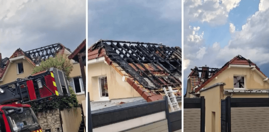 Toiture détruite par la foudre à Billy dans l'Allier (03) ce mardi 11 juillet 2023 - via BFMTV