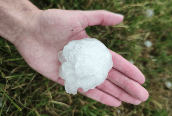 Grêlons de 8 à 10 cm de diamètre à Neulise dans la Loire (42) ce mardi 11 juillet 2023 - photo Lony Jouin