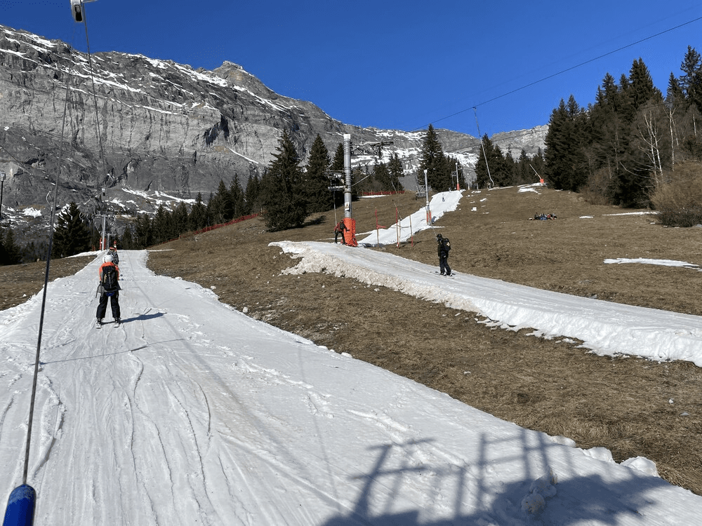 Manque de neige dans la station de Plaine-Joux (Haute-Savoie) vers 1500m le lundi 20 février 2023 - photo "titou38" sur infoclimat.fr