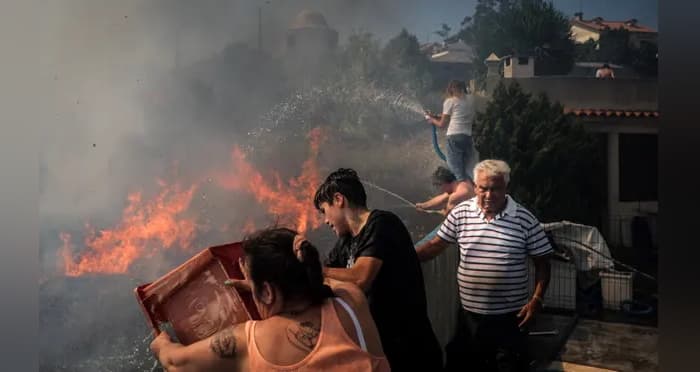 Habitants luttant contre le feu à Caneças près de Lisbonne (Portugal) le dimanche 10 juillet 2022 - photo Mario Cruz / EPA