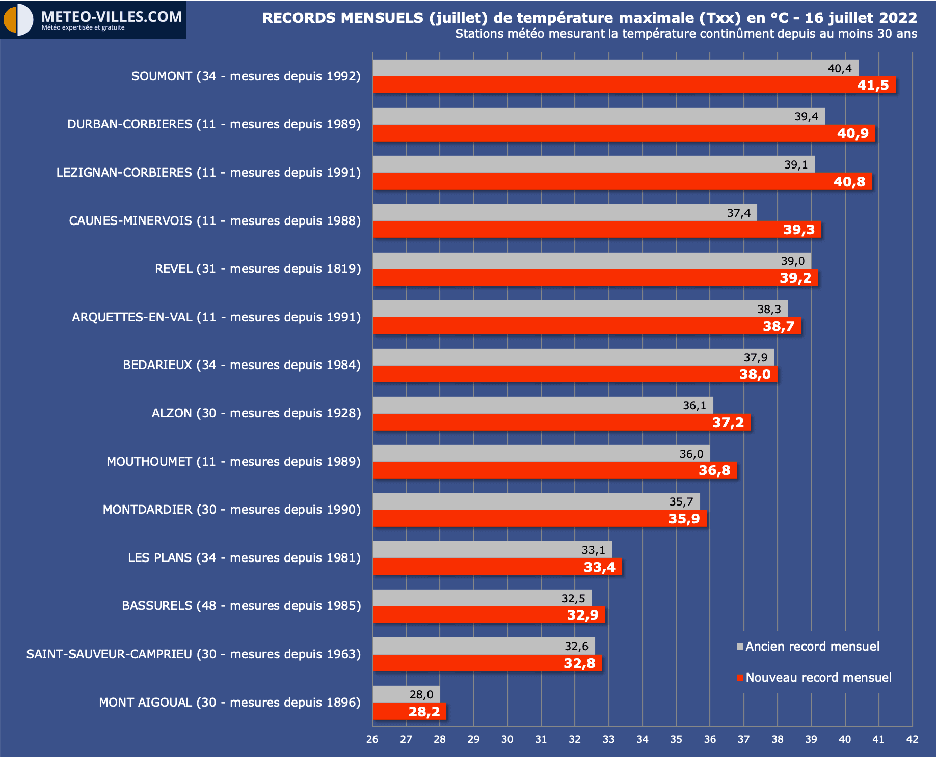 - 41.9°C à Belin-Beliet - Centre (33) : Record mensuel