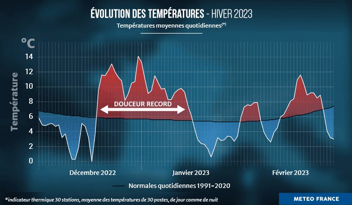 Caractéristiques dominantes des 90 jours de l'hiver 2022-2023 en France - Météo Villes