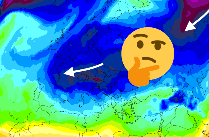 Le problème est qu'une goutte froide est un phénomène difficile à anticiper par les modèles. Pour que les basses pressions soient actives vers l'Italie afin de servir de "pompe à froid", il faut que la goutte froide soit suffisamment dynamique (et donc que le talweg à l'origine de celle-ci soit profond). Or, les autres modèles envisagent un talweg moins profond, si bien que la goutte froide serait faible et ne donnerait qu'une cyclogenèse limitée en Méditerranée. Sans dépression active, le flux continental sera plus faible et plus temporaire, drainant moins efficacement le froid vers la France. Cela favorisera aussi le rabattement plus rapide de l'anticyclone directement au dessus de l'hexagone.
