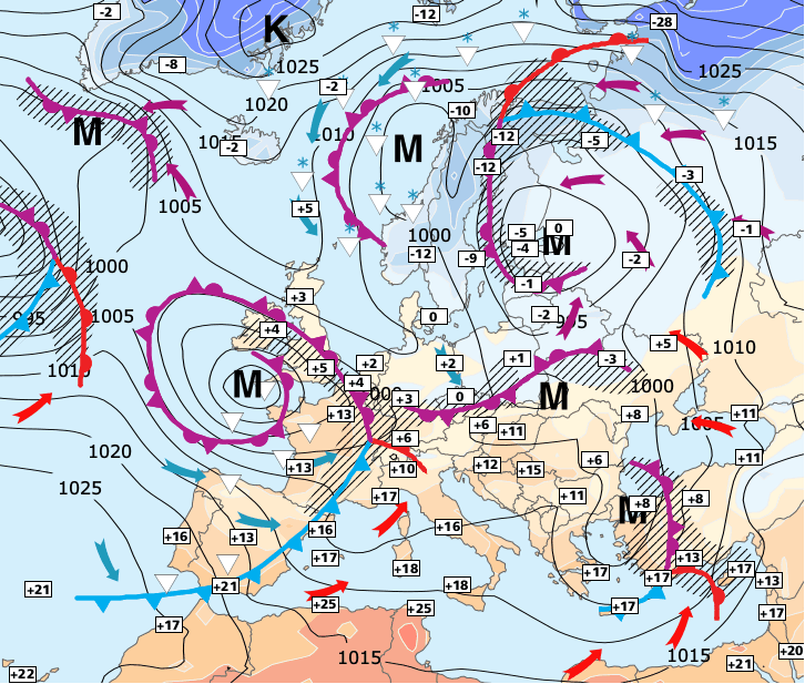 + Les conditions météo resteront très perturbées dans les prochains jours car la France dans une zone de conflit entre l'air froid polaire qui recouvre le Nord de l'Europe (notamment la Scandinavie) et la douceur Ibérique qui remonte par vagues successives - lire notre article complet sur les raisons de cette agitation ici >>>
