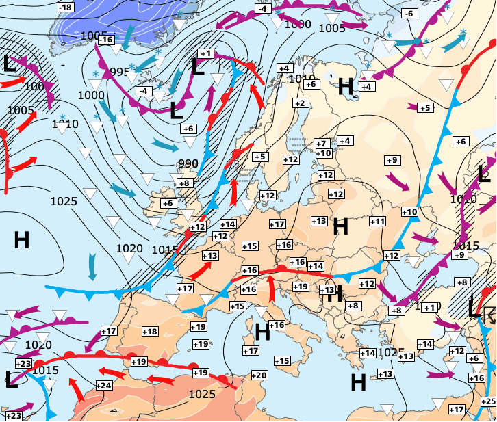 + En tout cas, l’air froid qui aura envahi toute la partie Nord de l’Europe devrait finir par nous concerner de manière atténuée en fin de semaine prochaine.