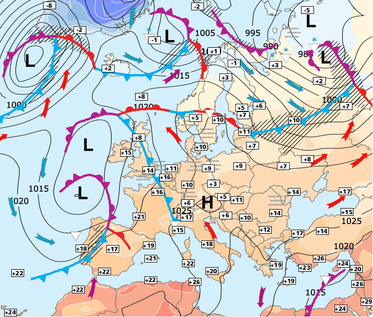 + Dans les prochains jours, la situation météo sera encore dominée par la persistance de l'anticyclone sur l'Europe continentale.