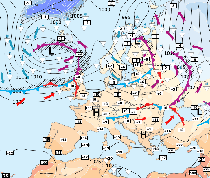 + Mais la perturbation qui abordera la façade atlantique dans la soirée de mardi sera contrainte à faire demi-tour dés mercredi soir en raison de la rapide reconstitution d'un nouveau massif de hautes pressions !